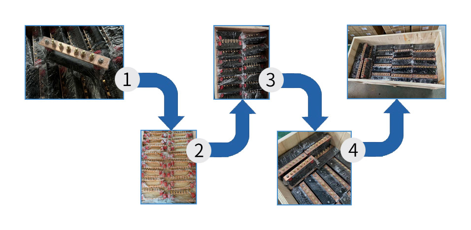 Brass bolts are provided as standard for plain copper bars. Stainless steel bolts are provided as standard for tinned copper bars.